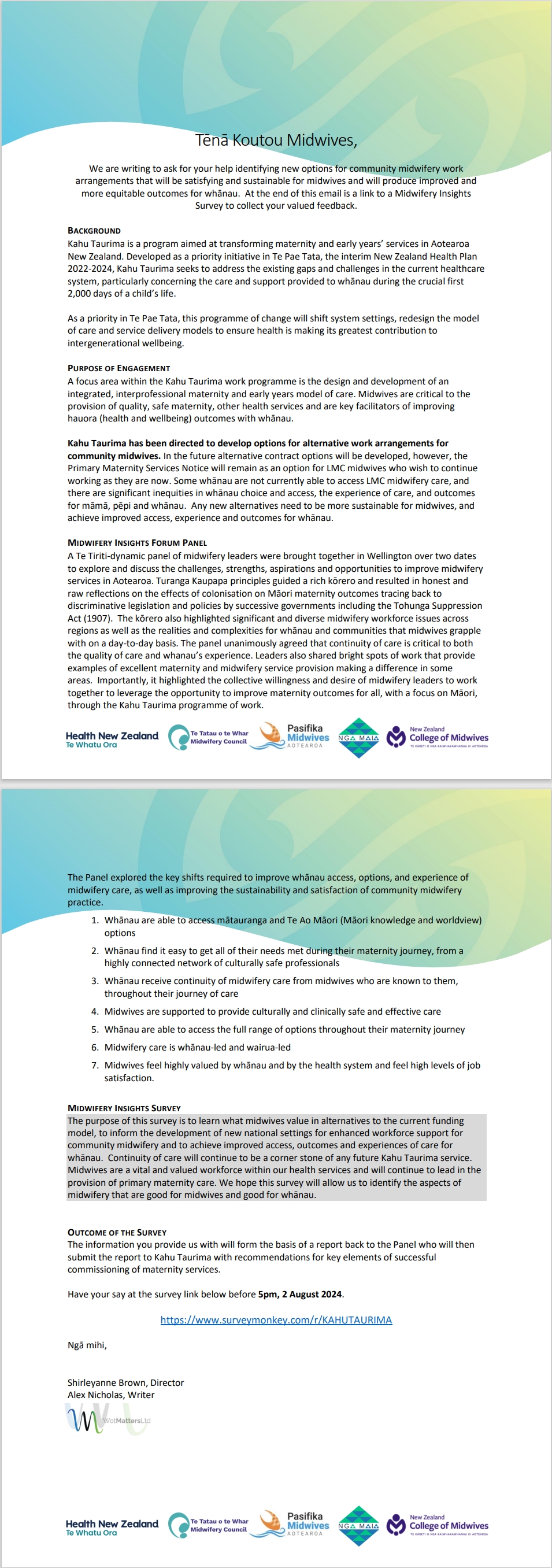 And the final survey link: https://www.surveymonkey.com/r/KAHUTAURIMA