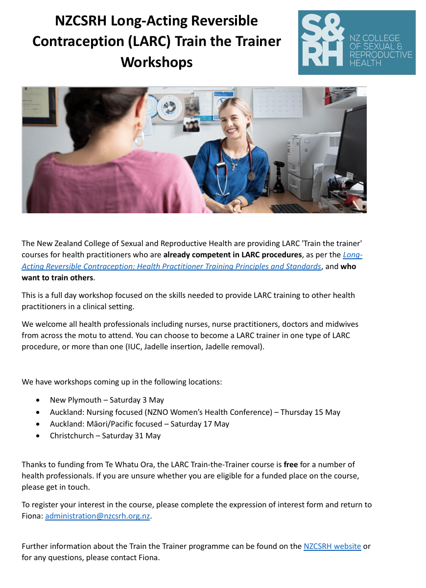 Thursday 15 May - Auckland - NZNO Women's Health conference - for nurses and nurse practitioners
